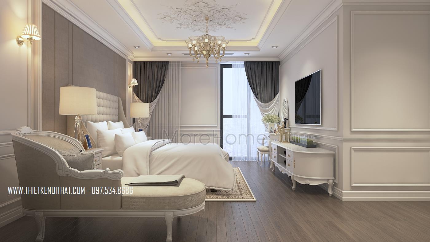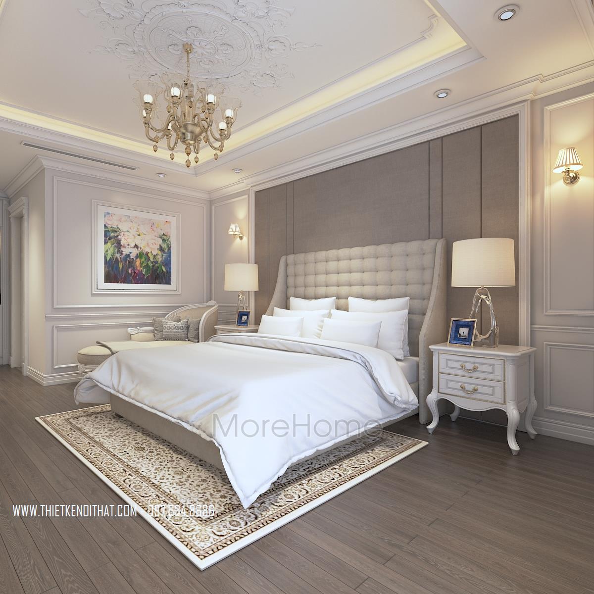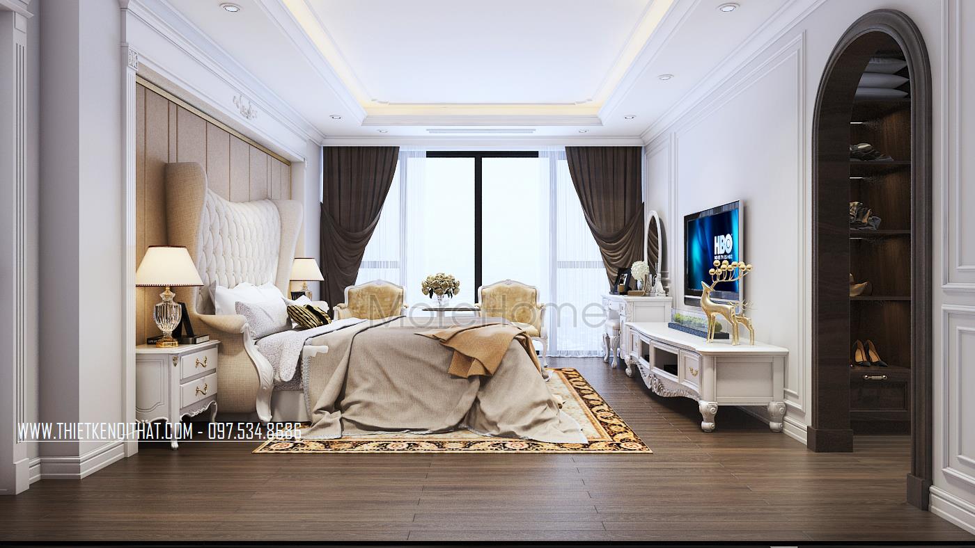 Thiết kế phòng ngủ khách sạn tân cổ điển với gỗ óc chó cao cấp