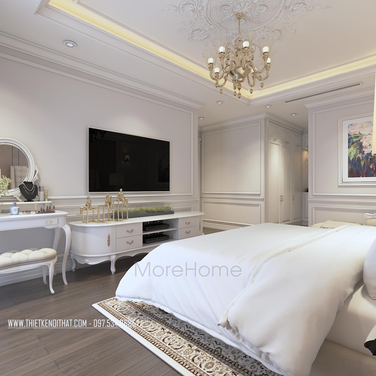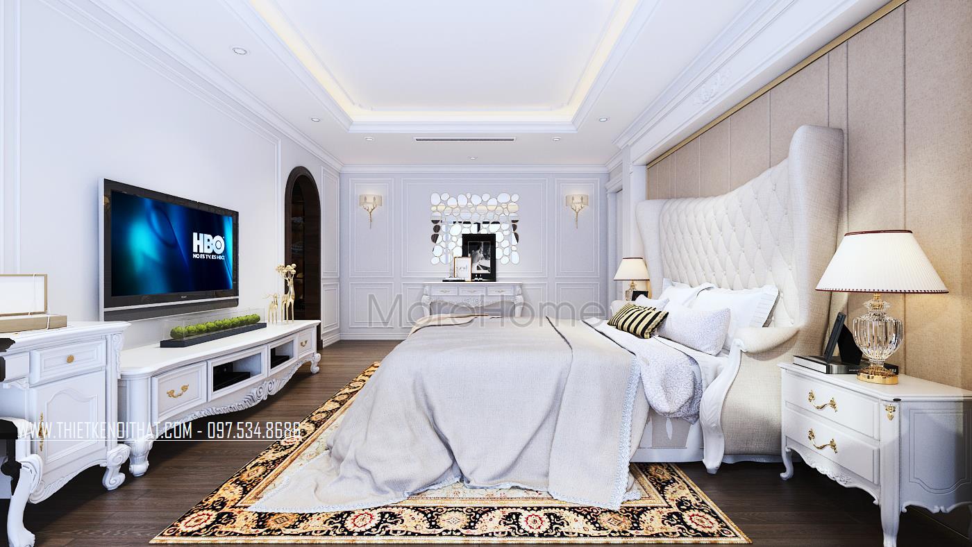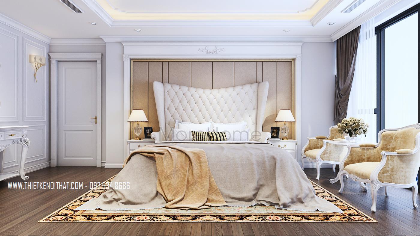 Thiết kế phòng ngủ khách sạn tân cổ điển với gỗ óc chó cao cấp