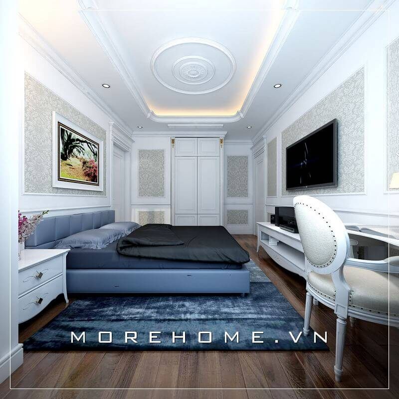 Mẫu phòng ngủ đẹp cho con trai được thiết kế với tone trắng làm chủ đạo, giúp tạo chiều sâu cho không gian, tạo hiệu ứng thị giác khiến căn phòng có vẻ rộng hơn so với diện tích thực