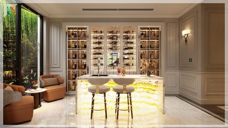 Với phong cách thiết kế hiện đại kết hợp với phong cách phối đồ nội thất hài hòa đã tạo nên 1 không gian rượu tuyệt vời. Không gian này đã làm tốn rất nhiều thời gian của các chủ hộ và các kiến trúc sư thiết kế.