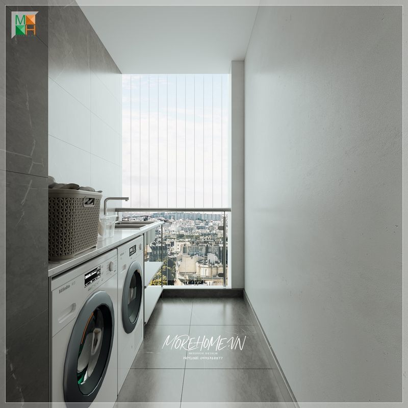 Tận dụng triệt để phần không gian {thiết kế|trang trí] làm nơi giặt đồ hợp lí giảm thiểu tối đa sự ám mùi bột giặt tới các không gian khác của nhà