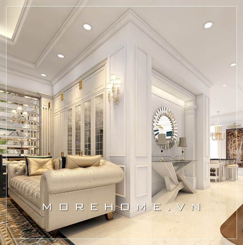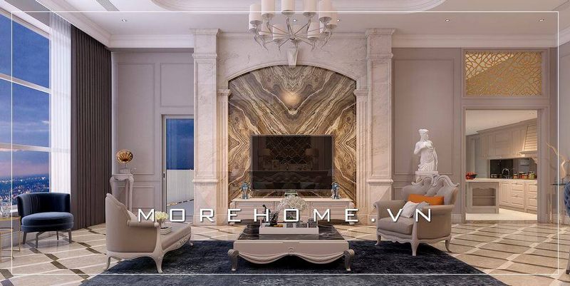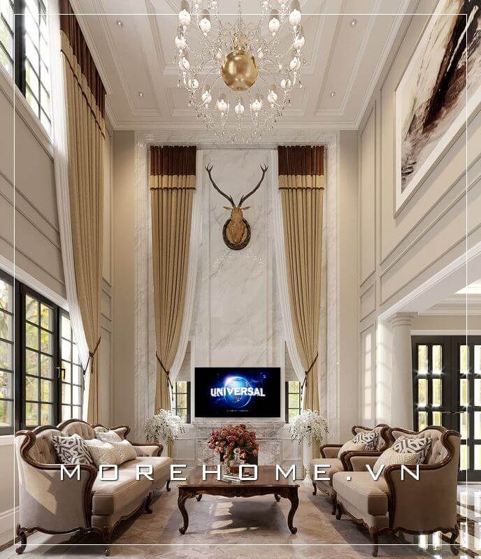Không gian phòng khách sẽ trở nên ấn tượng khi các gia chủ lựa chọn mẫu thiết kế mang phong cách tân cổ điển.