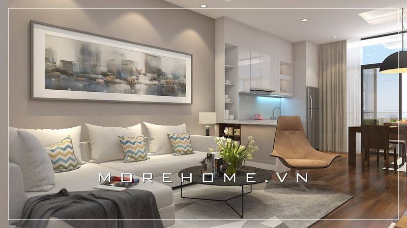 Gam màu tao nhã không hề rối mắt tạo cho không gian thoáng với 1 chung cư hiện đại.