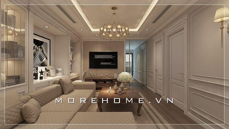 Kiến trúc sư Morehome áp dụng các hình khối đơn giản và cụ thể để thiết kế một phòng khách chung cư đẹp, giúp gia chủ có trải nghiệm thuận tiện và rõ ràng hơn.